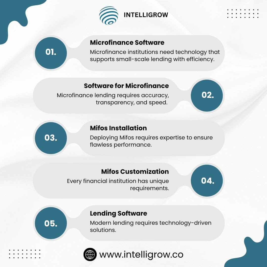 Discover powerful software for microfinance designed to streamline digital lending operations, improve borrower tracking, and enhance financial reporting accuracy. Our feature-rich microfinance software helps institutions automate daily workflows, reduce manual errors, and scale effortlessly while maintaining compliance. With real-time analytics, secure data management, and easy integration, it empowers MFIs to deliver faster, smarter services to their clients. Boost efficiency and grow your microfinance operations with our reliable technology backed by Intelligrow Consultancy Services Pvt Ltd.