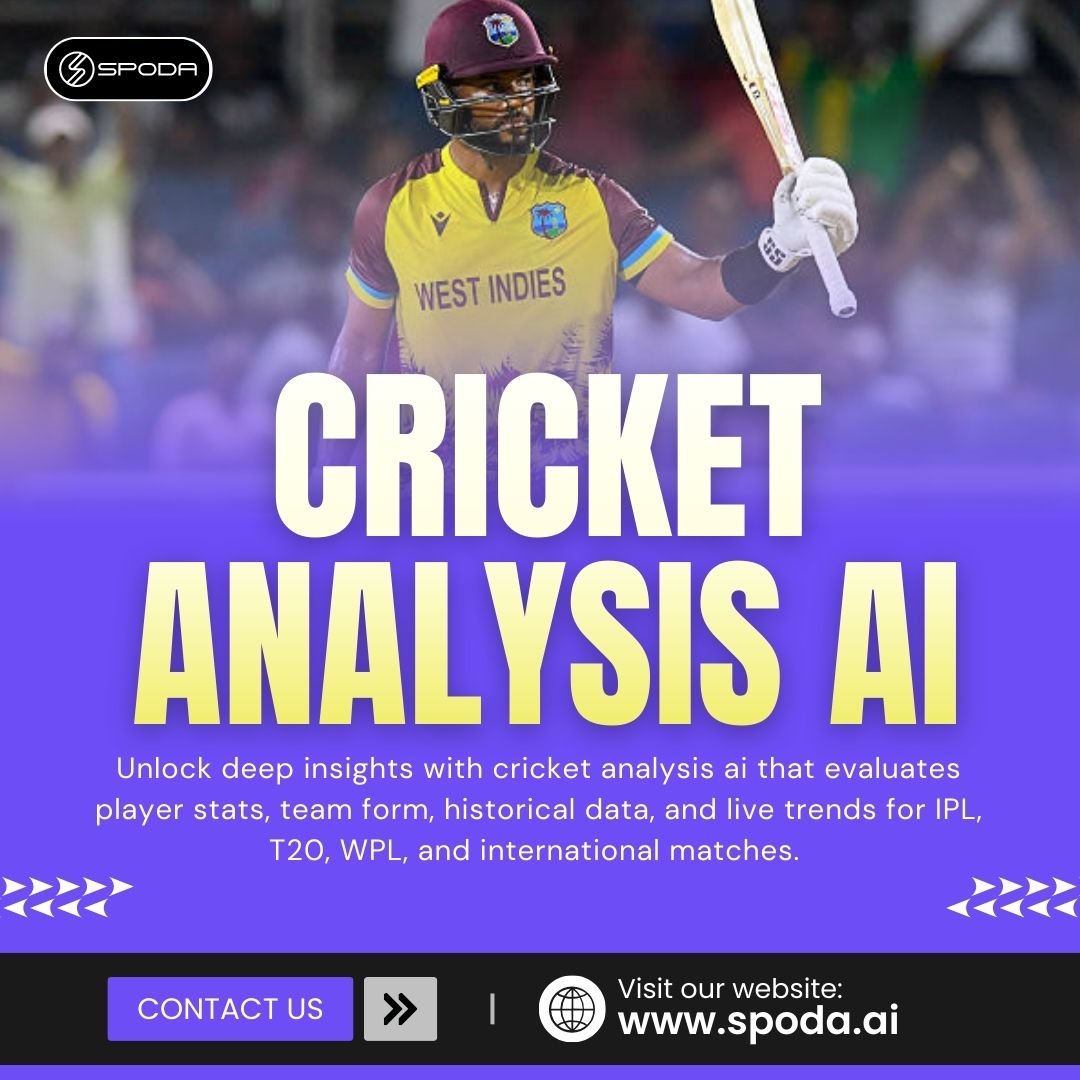 Unlock deep insights with cricket analysis ai that evaluates player stats, team form, historical data, and live trends for IPL, T20, WPL, and international matches. Enhance prediction accuracy, develop smarter strategies, and stay ahead in cricket analytics. Rely on Spodata Solutions Pvt Ltd for advanced AI-powered cricket analysis and precise forecasting solutions tailored for enthusiasts, analysts, and bettors.