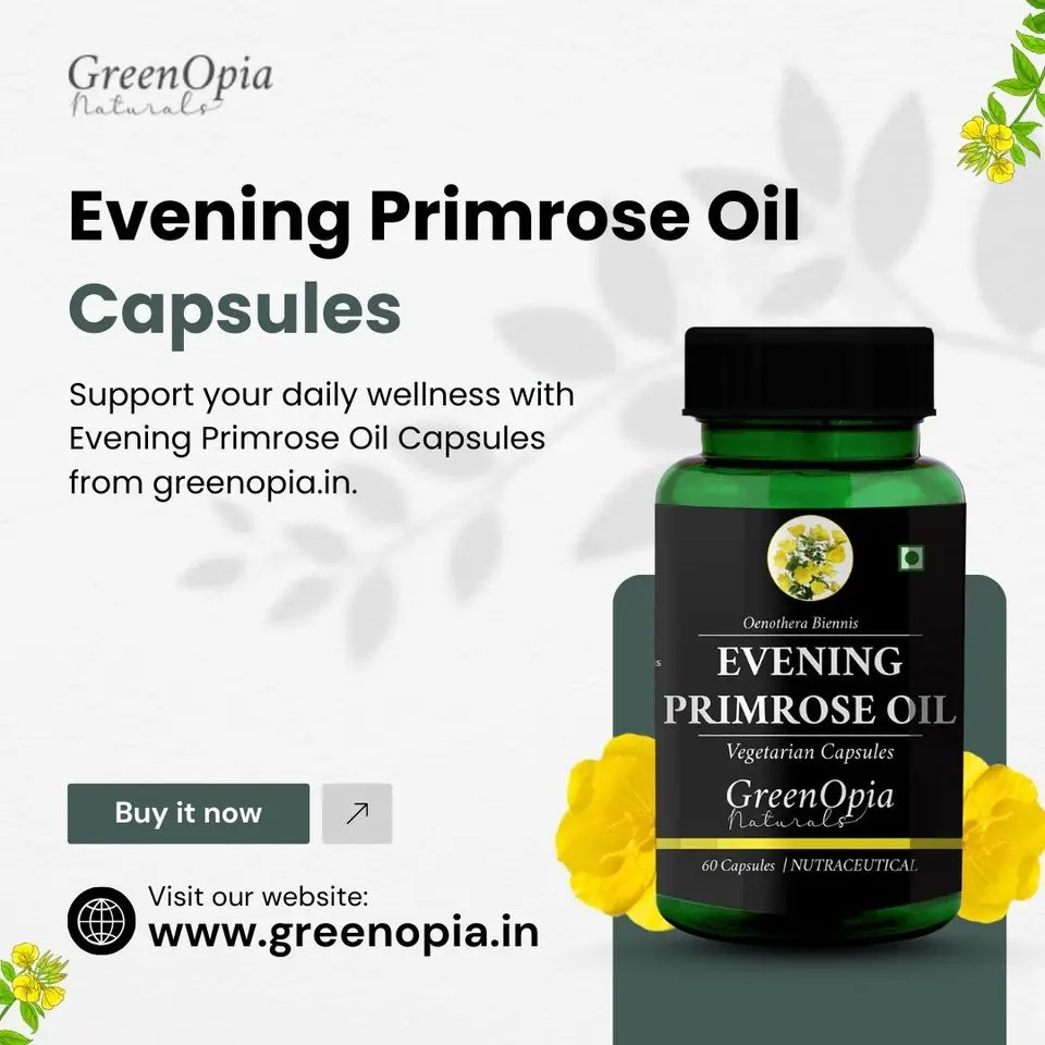 Support your daily wellness with Evening Primrose Oil Capsules from greenopia.in. Carefully formulated for easy consumption, these capsules are suitable for routine nutritional support. Ideal for health-focused lifestyles, they fit well into balanced supplement plans. Shop trusted wellness products online with assured quality and reliability at greenopia.in.