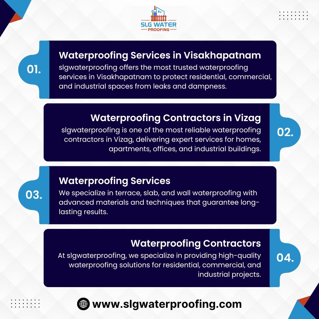 Ensure complete protection for your property with slgwaterproofing’s expert waterproofing services. We specialize in terrace, slab, and wall waterproofing with advanced materials and techniques that guarantee long-lasting results. Our services prevent water seepage, cracks, and dampness, keeping your home or office secure and damage-free. Choose our professional waterproofing services for high-quality workmanship, affordable prices, and guaranteed durability you can rely on.