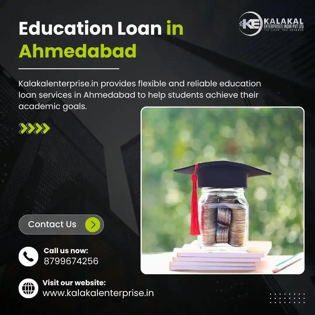Kalakalenterprise.in provides flexible and reliable education loan services in Ahmedabad to help students achieve their academic goals. We assist in securing the right financing for higher studies in India or abroad with clear guidance and smooth processing. Our friendly team ensures transparent terms, manageable repayment options, and personalized support at every stage, making quality education accessible and worry-free for students and families.