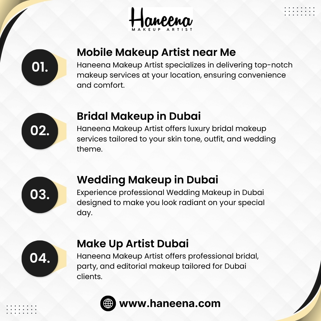 Experience professional Wedding Makeup in Dubai designed to make you look radiant on your special day. Haneena Makeup Artist specializes in long-lasting, camera-ready wedding makeup for brides, receptions, and ceremonies. With a keen eye for detail, high-end products, and customized looks, every bride receives a flawless finish. Reserve your wedding makeup session in Dubai today and enjoy a stunning transformation that truly reflects your style.