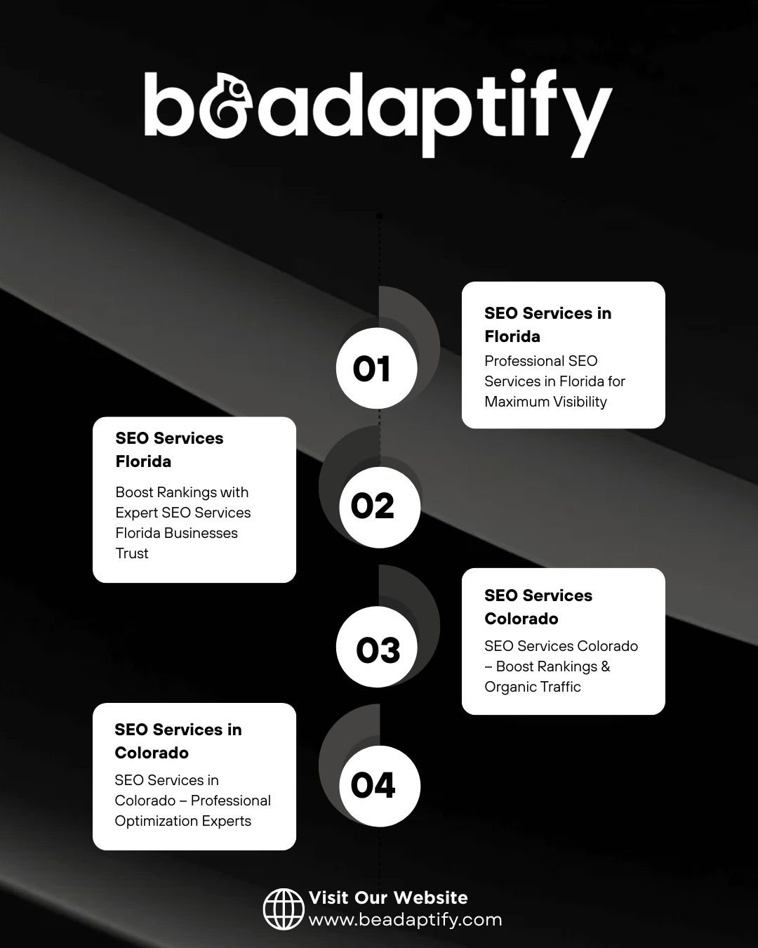 Enhance your online visibility with professional SEO services in Colorado. We combine technical SEO, on-page improvements, and off-page strategies to help your business rank higher and attract qualified leads. Our customized SEO plans are designed for sustainable growth. Get measurable results with Beadaptify Innovations’ trusted optimization solutions.