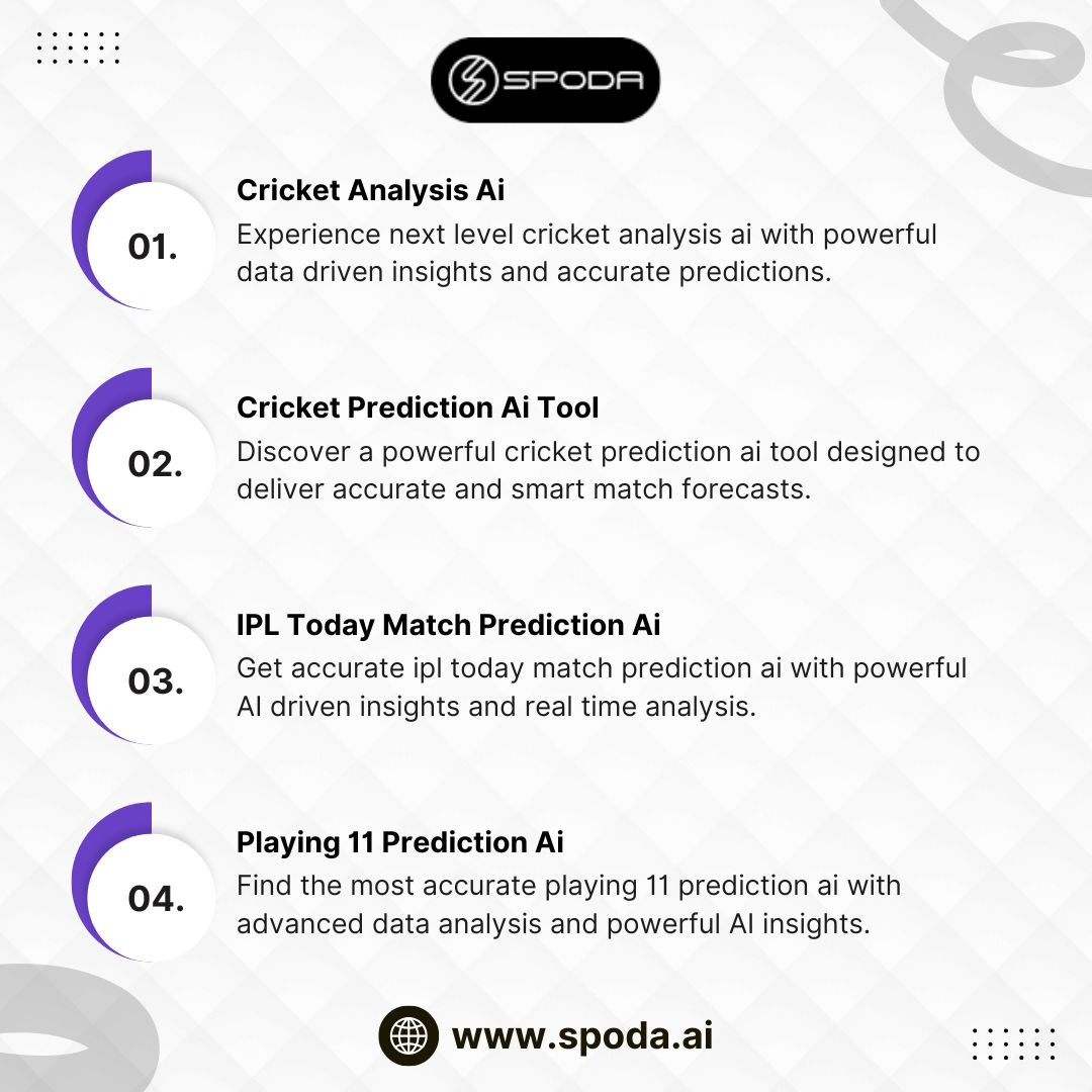 Get accurate ipl today match prediction ai with powerful AI driven insights and real time analysis. Stay updated with team performance, player form, and match conditions to make smart predictions for every IPL game. This advanced platform provides expert level forecasts designed to give you a winning advantage. Perfect for fans who want reliable and fast predictions, it delivers consistent results with precision. Trust Spodata Solutions Pvt Ltd for cutting edge IPL prediction solutions powered by advanced AI technology.