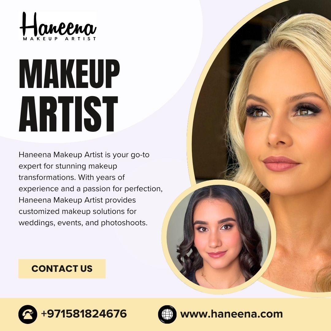Haneena Makeup Artist is your go-to expert for stunning makeup transformations. With years of experience and a passion for perfection, Haneena Makeup Artist provides customized makeup solutions for weddings, events, and photoshoots. Using the latest trends and high-quality products, Haneena Makeup Artist guarantees a look that highlights your best features. Explore professional makeup artistry that enhances your beauty and leaves a lasting impression. Connect with Haneena Makeup Artist now to elevate your style with a touch of elegance and sophistication.