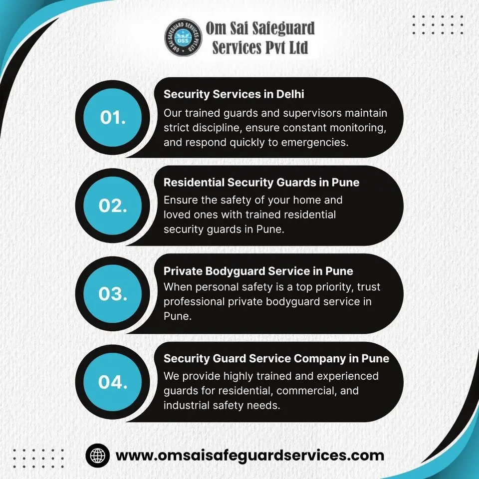 Looking for a dependable security guard service company in Pune? We provide highly trained and experienced guards for residential, commercial, and industrial safety needs. With expertise in monitoring, surveillance, and quick response, we ensure a secure environment for your property and people. Om Sai Safeguard Services Pvt Ltd is your trusted partner in delivering professional and affordable security services across Pune.