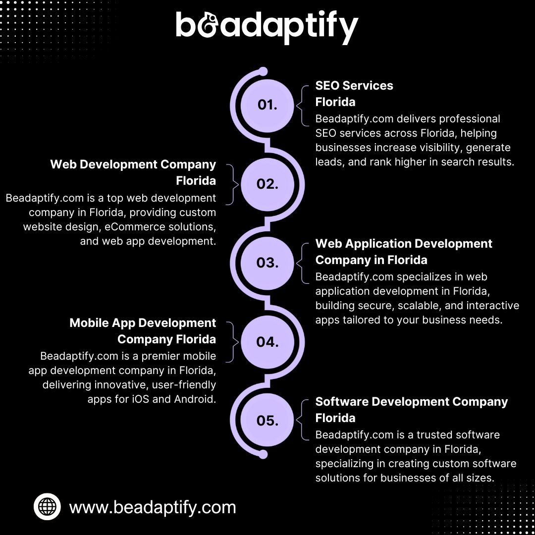 Beadaptify.com delivers professional SEO services across Florida, helping businesses increase visibility, generate leads, and rank higher in search results. Our Florida SEO experts focus on keyword research, on-page optimization, and link-building strategies to drive measurable growth. With Beadaptify.com, you gain a trusted partner committed to boosting your online presence and ensuring your business stands out in Florida’s competitive digital landscape.